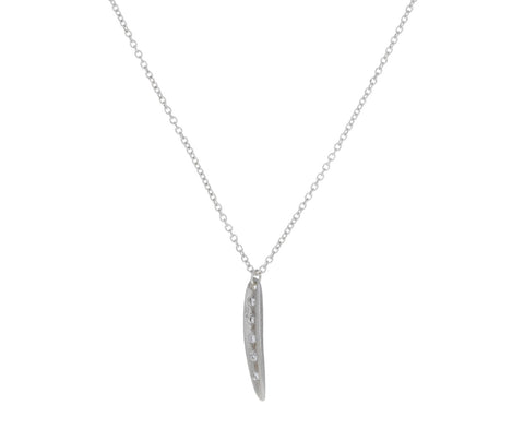 With a hint of casual sparkle and earthy style, this Branch pendant necklace has a goes-with-everything look. The folded leaf is set with a vertical row of shimmering diamonds to create a tiny, elegant pendant which hangs from the center of the silver chain. Alone or layered with your other go-to favorites, it has a modern, minimal and understated presence.
