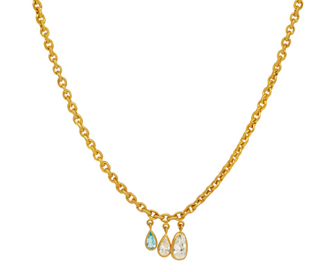 Triple Pear Diamond and Paraiba Tourmaline Gem Drop Necklace