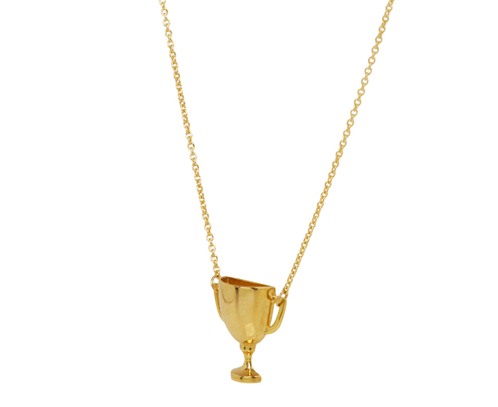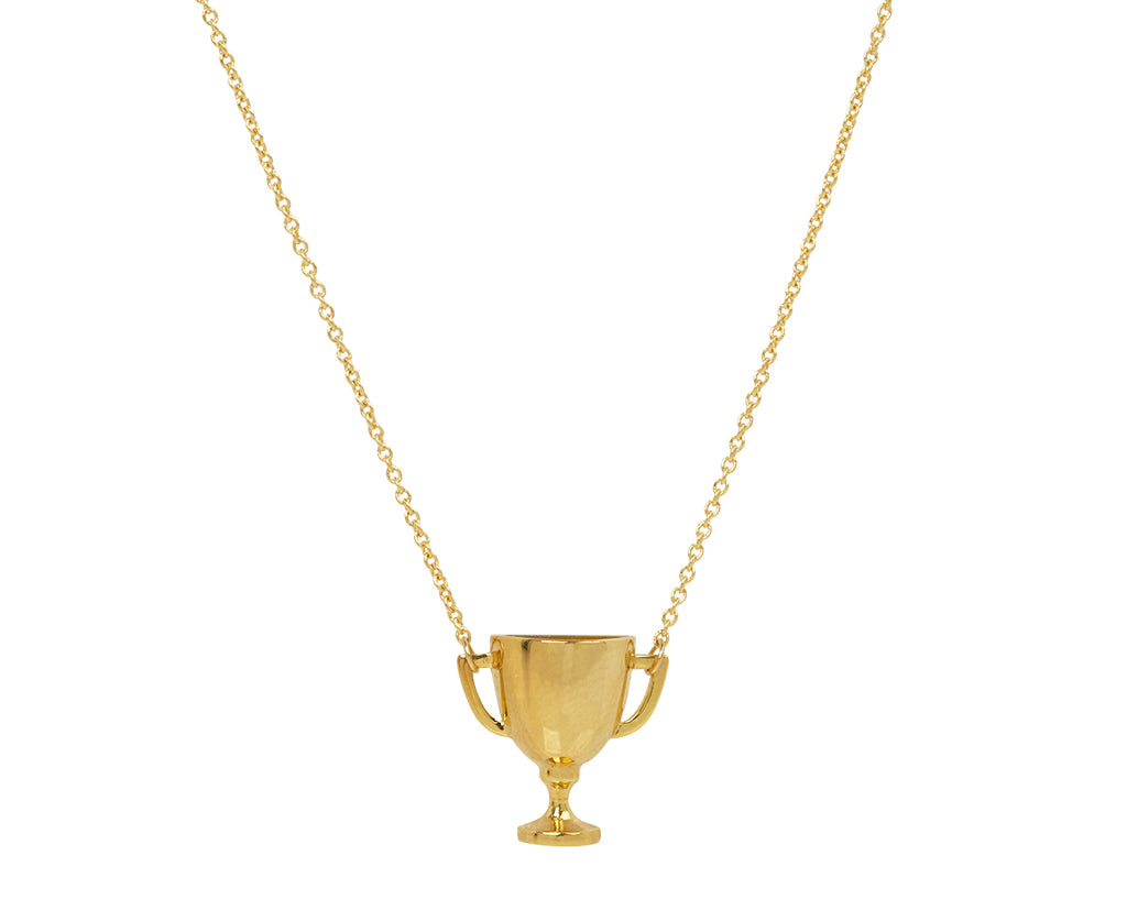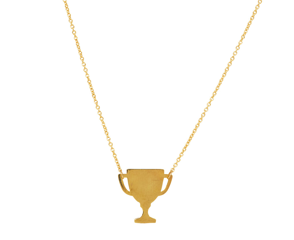 With its celebratory symbolism and easy-to-wear style, this Aliita necklace is the perfect addition to any casual jewelry collection. Hanging from the center of the adjustable 9K yellow gold chain is a 9K yellow gold trophy charm. Wear it alone or add it to a layered look for an unexpected element of whimsy.