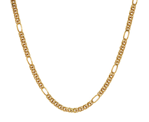 Stunning in its timeless design, this vintage chain has been hand selected by Beck Jewels. The 14K yellow gold double curved figaro chain is substantial in weight and design and fastens with a 14K yellow gold safety clasp closure. The perfect backdrop to any of her pendants.