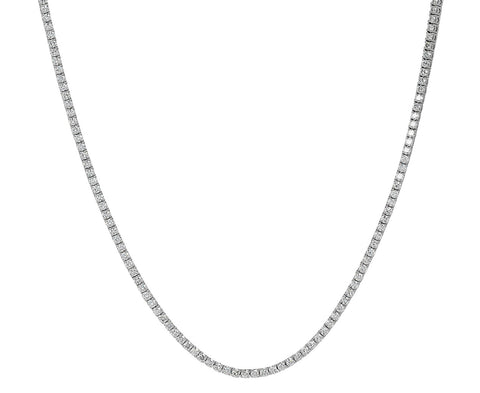 With its stunning shimmer and minimal elegance, this stunning Melissa Kaye necklace is a perfect take on the everyday diamond necklace. Each sparkling white diamond is set in tiny 18K white gold prongs and linked together to create a fluid, articulated strand of shimmer. Wear it alone or nestled in with your other favorites.