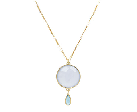 Chalcedony and Blue Topaz Moon Drop Necklace