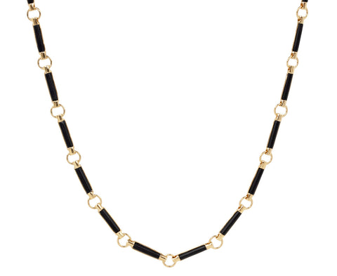Whether worn alone or with an added pendant, this Foundrae necklace is a modern alternative to the traditional chain. The continuous strand is composed of links made up of polished 18K yellow and black onyx. Each circle acts as an opportunity to add a separate annex link and charm.