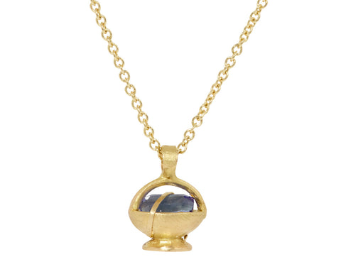 With its finely crafted details and standout design, this Fraser Hamilton necklace is perfect for someone with a statement-making style. The 18K yellow gold pendant is an intricately hand carved carrier for a gorgeous natural tanzanite, encased in a vessel of gold. The pendant hangs from the center of the shimmering 18K yellow gold chain.