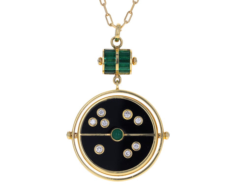 Black Onyx, Emerald and Diamond Grandfather Compass Pendant Necklace