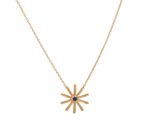Blue Sapphire Tiny Sunflower Pendant Necklace