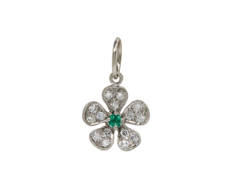 Created as an homage to the invisible connection we have with the natural world, this quietly elegant Cathy Waterman pendant echoes the tiny flowers she remembers seeing walking through Muir Woods as a child. The platinum violet has a tiny green emerald prong set at the center and is surrounded by shimmering white diamond petals. It hangs from the platinum bale and looks stunning whether worn alone or clustered with your other favorites.