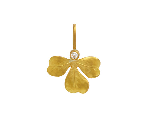 Inspired by the invisible connection we have with the natural world, this quietly elegant Cathy Waterman pendant echoes a tiny three leafed clover. The 22K yellow gold clover hangs from a 22K yellow gold bale set with a shimmering white diamond. Here we have it hanging from her signature Tiny Lacy Chain (sold separately).