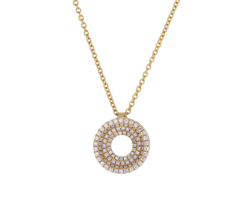With a modern sophistication and understated sparkle, this State Property necklace makes a statement whether worn alone or layered with your other favorites. The open 18K yellow gold pendant has a front surface covered in tiny, shimmering white diamonds. The pendant hangs from the center of the adjustable 18K yellow gold chain.