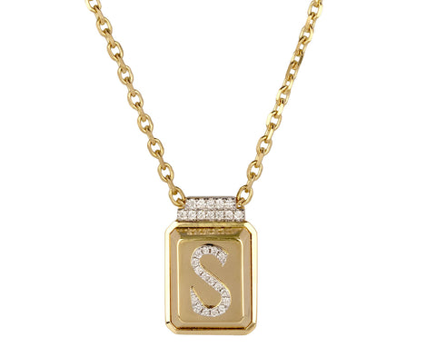 With its talismanic combination and symbolism, this Sorellina necklace has the perfect balance sparkle. The tablet of 18K yellow gold is set with a diamond 'S' to symbolize yourself, a loved one or a pet. The pendant is topped with a double row of sparkling diamonds and hangs from the 18K yellow gold chain.