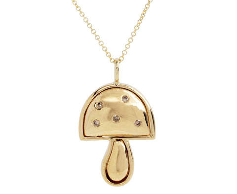 Gold and Diamond Mini Mushroom Pendant Necklace