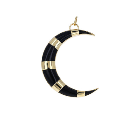 Modern and celestial, add this nature inspired Foundrae pendant to any of your Foundrae chains. The 18K yellow gold large black onyx crescent moon hangs from an 18K yellow gold bale. This charm is from Foundrae's Earth collection and is a reminder that earth has the ability to manifest and create with stability and loyalty.