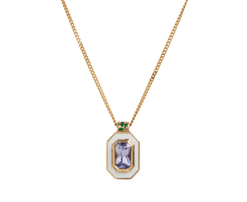 14K yellow gold, enamel and lilac spinel pendant : 5/8" x 3/8"