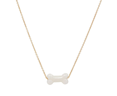 Carry around a representation of your favorite canine friend, this Aliita necklace can easily be added to a layered look or worn alone. The 9K yellow gold adjustable chain has a smooth white coral bone at its center. It closes with a 9K yellow gold spring ring clasp.