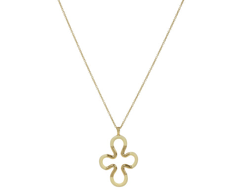 Add this Bea Bongiasca necklace to any playful, casual look. Hanging from the 9K yellow gold chain is a panna cream enamel squiggly flower that is surprisingly versatile. The pendant a standout alone or a fun funky layering piece with your other favorites.