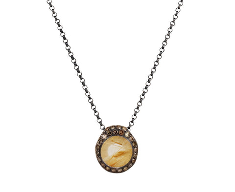 Golden Rutilated Quartz and Cognac Diamond Pendant Necklace