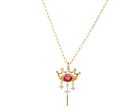 Pink Spinel Evil Eye Crown Pendant Necklace
