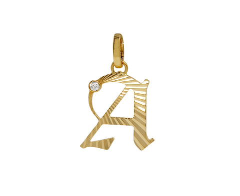 Symbolize your initial, a special word, or the first letter of a favorite someone with this oversized Foundrae pendant. The 18K yellow gold Olde English letter has a radiating, textured surface and one bezel set diamond at its base. It connects to the 18K yellow gold push gate and would make the perfect addition it to any of Foundrae's chains.