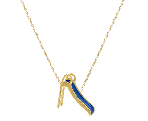 With its playful design and vibrant color, this Aliita necklace celebrates happiness and fun. The 9K yellow gold pendant has a hand painted blue enamel slide. It hangs at the center of the adjustable 9K yellow gold chain which closes with a 9K yellow gold spring ring clasp. Wear it alone or layered with your other everyday favorites.