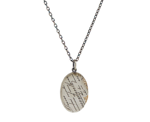 With its stylish symbolism and modern vibe, this Tó Garal necklace begs for a closer look. The sterling silver pendant has a matte surface that has been engraved with a cursive poem, set diagonally. It hangs from the base of the oxidized sterling silver chain. Perfect worn alone or layered with your others.