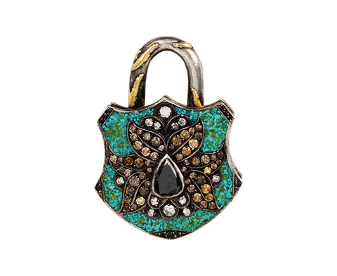 Turquoise Micro Mosaic and Fancy Diamond Flower Padlock Pendant