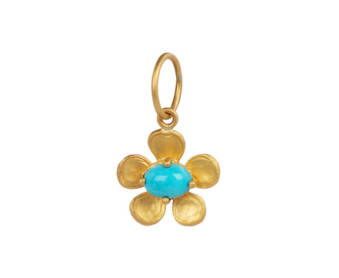 Created as a homage to the invisible connection we have with the natural world, this quietly elegant Cathy Waterman pendant echoes the tiny flowers she remembers seeing walking through Muir Woods as a child. The 22K yellow gold violet has a oval turquoise prong set at the center and hangs from a 22K yellow gold bale. Add it to any of your favorite chains!