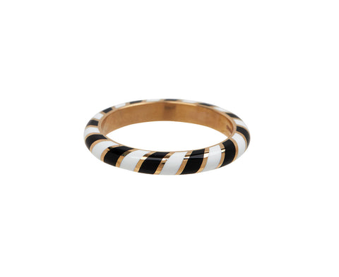 Bold and modern, this eye-catching Alice Cicolini ring adds a playful, patterned vibe to any jewelry collection. The polished 14K yellow gold band is meticulously covered in a design of black and white lacquer stripes. Inspired by the Memphis art movement of Ettore Sottass, these bright rings enable the wearer to create totemic stacks of color.