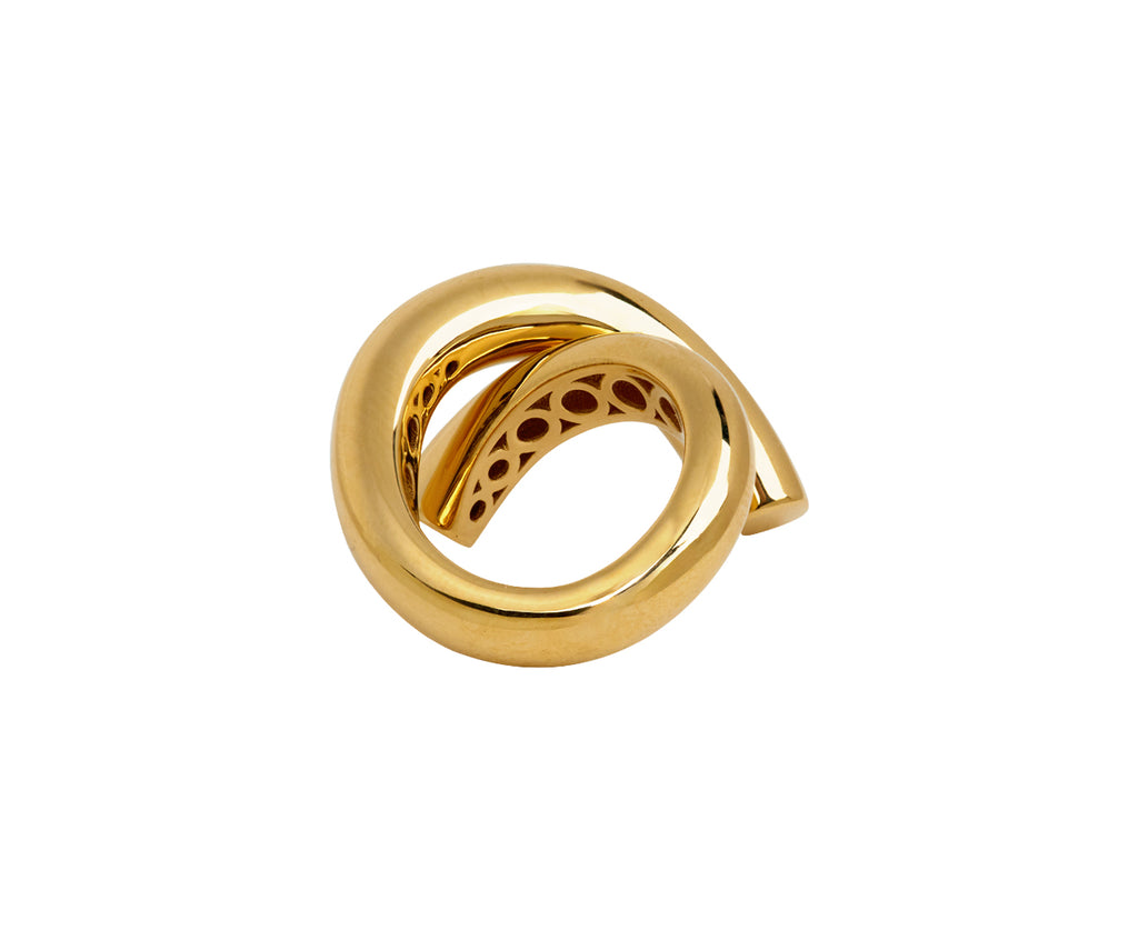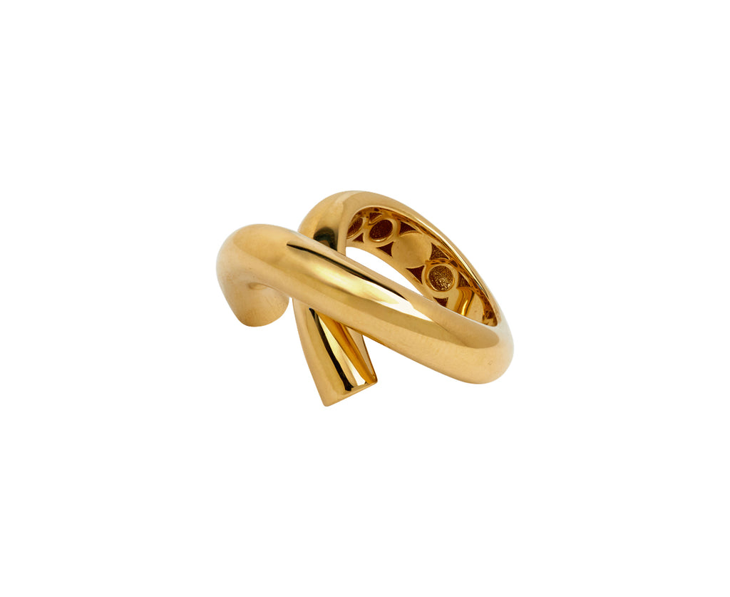 This striking, modern Engelbert ring will add the perfect amount of dimension to any collection. The 18K yellow gold bands overlap to create a three-dimensional 'X' . Wear it as a statement-making ring or even as a contemporary interpretation of the traditional wedding band.
