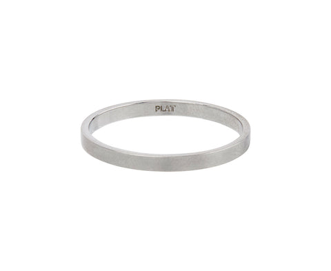 With its fluid lines and understated detail, this Rosanne Pugliese men's band has a modern, masculine feel. The squared platinum band has a matte finish, strong enough to convey the 'I'm taken' sentiment, he'll love wearing this ring on his finger.
