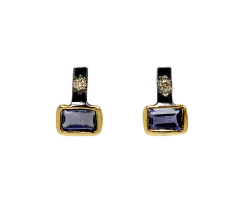 Mixed Metal Iolite and Diamond Stud Earrings