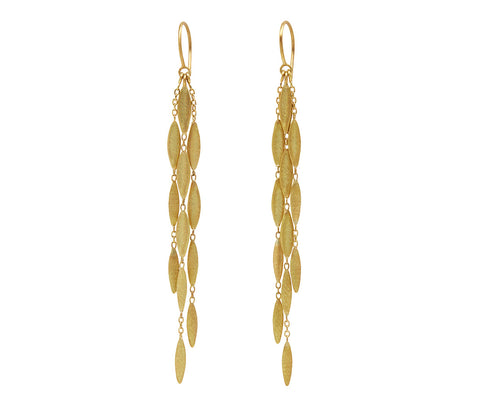 With their dramatic cascade and movement, these Sia Taylor earrings are a long drop of hand sculpted 18K yellow gold seeds. They hang along three verticals chain which each hang from the 18K yellow gold ear wires.