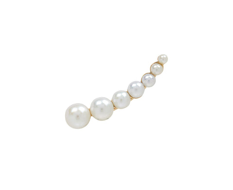 With its modern-meets-classic design, this Sophie Bille Brahe earring is as style-defining as it is statement-making. The luminous white freshwater pearls graduate in size and attach to a 14K yellow gold bar and ear wire to span the length of your ear lobe. They decrease in size as they climb the lobe for an edgy, glam style.