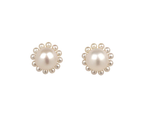 With their sweetly playful vibe, these Sophie Bille Brahe earrings are meant for someone with an understated style. The round, white freshwater pearls are set on 14K yellow gold backings to create small flowers that attach to 14K yellow gold post backs. Whether dressed up or down, they exude a striking sophistication.