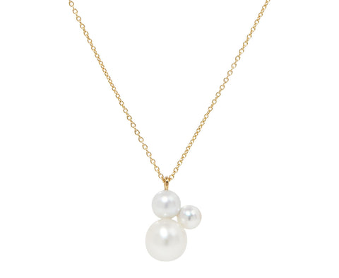 With its restrained elegance and subtle dimension, this Sophie Bille Brahe necklace is a modern interpretation of the traditional pearl pendant. Hanging from the center of the 14K yellow gold chain is a cluster of white freshwater pearls varying slightly in size. Wear this alone or layered with your other favorites.