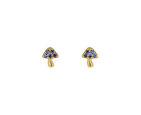 With their playful design and hint of sparkle, these teeny tiny Brent Neale earring are inspired by fairy tales and the creative, imaginative world of her children. The 18K yellow gold mushroom is set with tiny sparkling blue sapphires. Worn in a first or second piercing, these would be a fun addition to your collection.