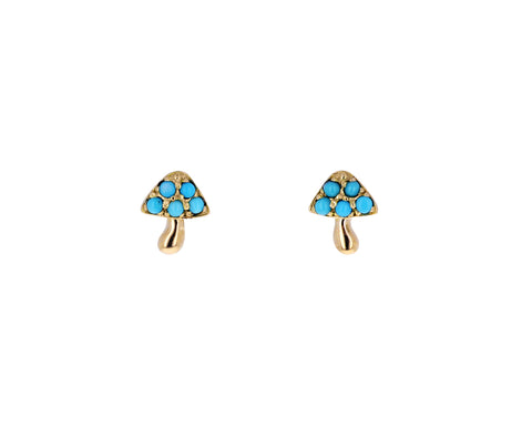 With its playful design and hint of color, these teeny tiny Brent Neale earring was inspired by fairy tales and the creative, imaginative world of her children. The 18K yellow gold mushroom is set with tiny turquoise gemstones. Worn in a first or second piercing, these add a fun addition to your collection.