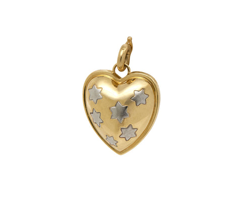 Add this striking Storrow charm to any of your favorite chains for a touch of decadent whimsy. The 14K yellow gold heart is set with 14K white gold stars. It hangs from the 14K yellow gold bale that opens, allowing it to be added to any of your favorite chains.