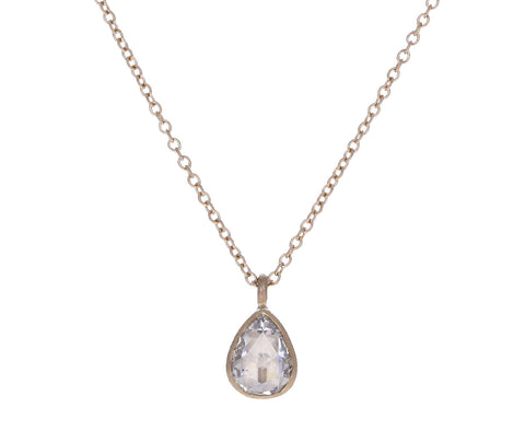 With a breathtaking elegance, this minimal Anaconda diamond necklace makes a stunning, restrained alternative to the traditional style. The shimmering rose cut white diamond teardrop is framed in warm-toned palladium and 18K white gold to create the pendant which hangs from the white gold chain. This is the kind of necklace you will reach for to wear every single day.