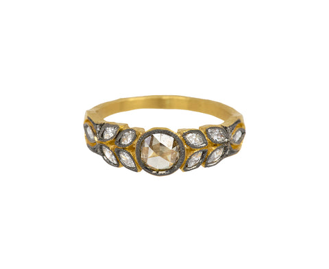 Rose Cut Apricot Diamond Small Garland Ring