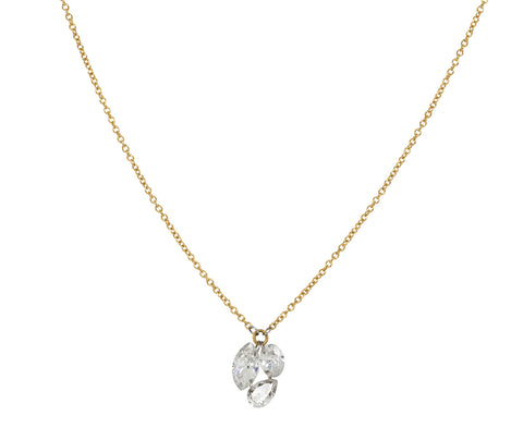 This sweet, sparkling Todd Pownell necklace looks perfect whether worn alone or layered with your other favorites. The three, mixed shape white diamonds connect to one another by thin platinum rings and hang from the center of the 18K yellow gold chain. It has a restrained luxury that is perfect for everyday.