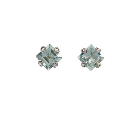 Pale green squares of green amethyst are set in Cathy Waterman's platinum and diamond thorns to create a stunning pair of colored gem post earrings. They connect to platinum post backs and would look perfect in a first or second piercing.