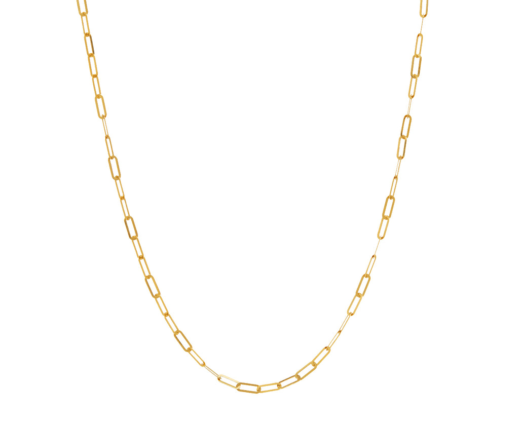 Long and sleek, this Joelle Kharrat chain is the perfect backdrop for her signature totem pendants. The thin, oval 18K yellow gold links connect to one another to create the long strand. It closes with an 18K yellow gold lobster clasp.