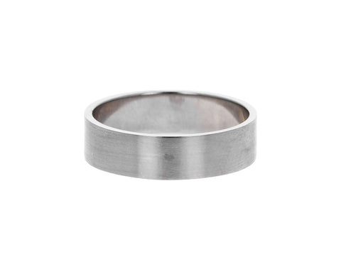 Simple, classic and all about the symbol of eternity, this Rosanne Pugliese band makes a modern statement. The 5mm matte platinum band has a wide surface and flat, square edges.