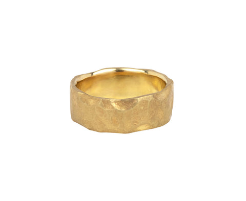 With its earthy, minimal design, this Todd Pownell band is the perfect update on the traditional men's wedding band. Symbolize a wedding, commitment or another special occasion with this 18K yellow gold hand-hammered, eroded-edged band.