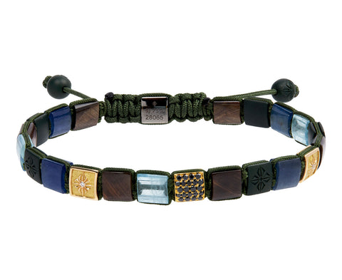From the timeless, spiritually influenced collection of Shamballa Jewels comes this stunning, signature bracelet. Steeped in the spiritual and inspired by the prayer beads of many cultures, this bracelet is a vibrant series of smooth, multi-colored gem beads tightly braided into the olive nylon cord. It can be adjusted by pulling the double round beads held by the signature square lock bead. Alone with its earthy luxury or layered with your power stack, wear this and seek your Shamballa within.