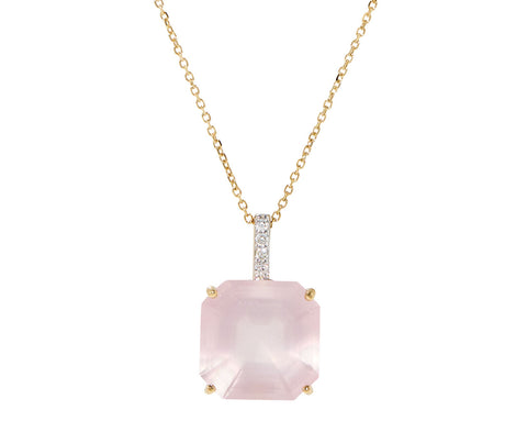 Modern, minimal and with just a whisper of sparkle this Mateo necklace is an eye-catching composition of materials. The asscher cut pale pink topaz is set in 14K yellow gold prongs and connects to the diamond encrusted bale. It hangs from the base of a 14K yellow gold chain to create an necklace you can wear everyday!