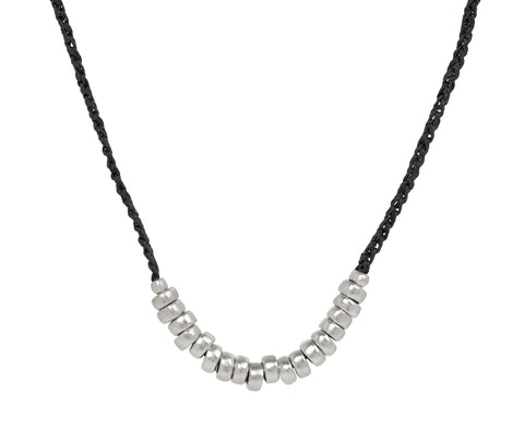 Earthy and elemental with an easy-to-wear style, this Jill Platner necklace is built to last. The woven Tenara cord is set with a shimmering series of hand-sculpted sterling silver beads. The necklace fastens with Jill's signature sterling silver toggle clasp closure and can be worn alone or layered with your other favorites.