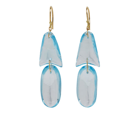 Sculptural and statement-making, these Ten Thousand Things earrings offer an impeccable versatility. Smooth drops of hand cut pale blue topaz connect with tiny 18K yellow gold loops and hang from 18K yellow gold ear wires. Wear them with everything from casual favorites to something more formal.