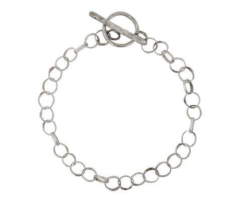 Elegant and earthy, this Disa Allsopp bracelet is a gorgeous composition of sterling silver. The hand-forged round links connect to one and other to from a continuous, fluid chain. Whether you wear it solo, couple it with your watch or add it to a stacked collection of your favorites, the look is as style-defining as it is contemporary.