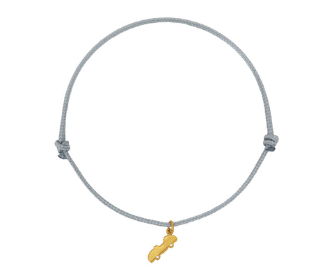 Minimal in its easy-to-wear, playful design, this Marie-Hélène de Taillac bracelet begs for a closer look. Dangling from the grey nylon cord is a 22K yellow gold car charm with two tiny white diamond wheels. Wear it alone or add it to a layered collection for an unexpected element of whimsy.
